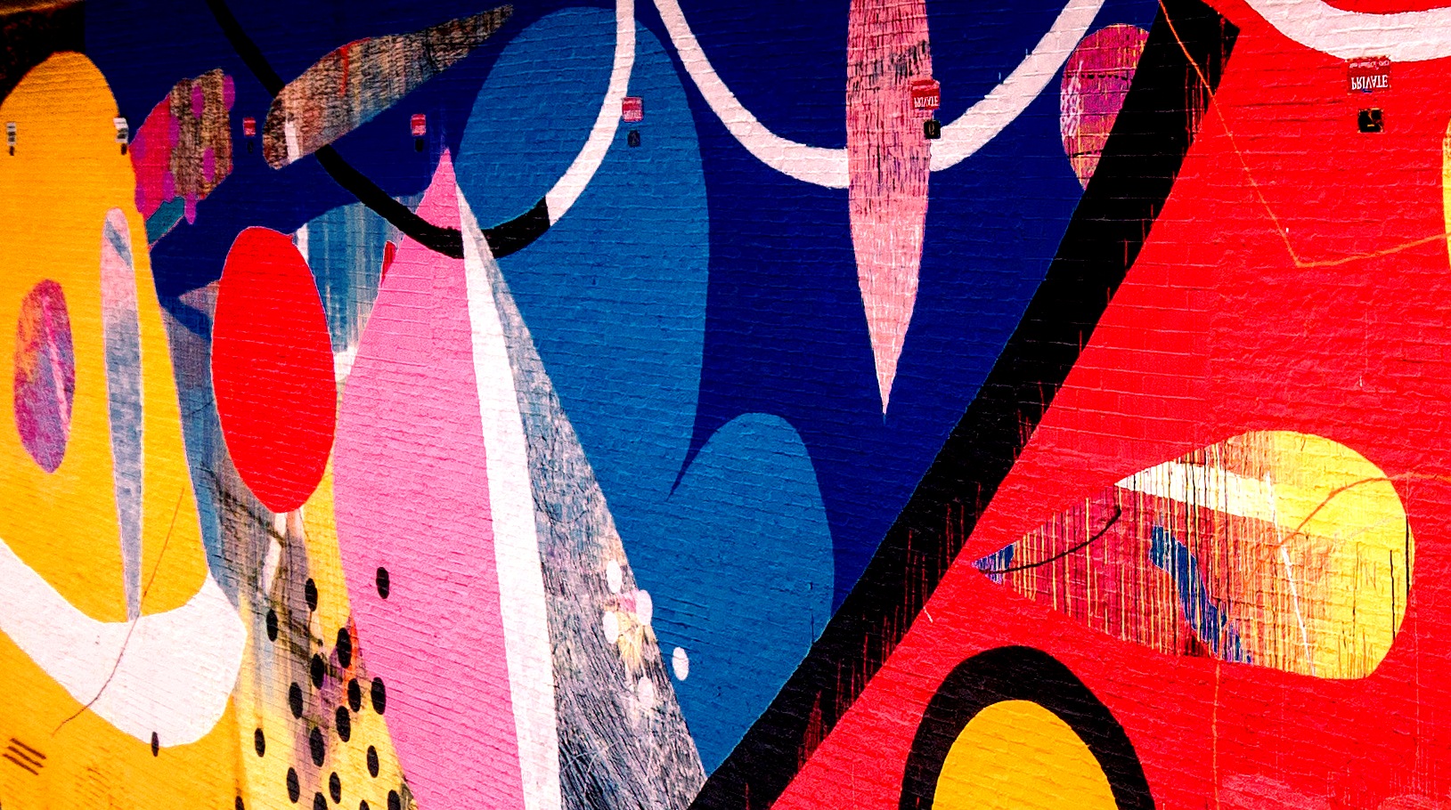 I’m constantly wanting to push the viewer and what can be perceived as a painting or mural within contemporary art. I worked on several concept drawings to present as rough ideas of aesthetic direction. I knew that visually, I wanted it to be drastically different from what it looked like before painting it.I also want to use very bright and bold colors to catch a viewers attention from far away. Most of my works are done in layers and I tend to work with some spontaneity while working. Using bold colors for this project is important for the wall to truly be transformed visually and reinterpreted as a piece of contemporary public art.”