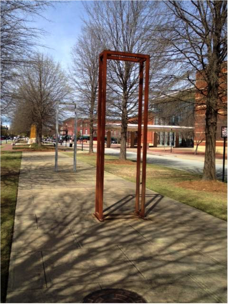 As a sculptor, Garley is intrigued by shape, mass, volume and surface. In the creation of “Junction,” she was inspired by the history of Columbus. She sees “Junction” as a symbolic portal that connects the Historic District to the revitalized Uptown Columbus.