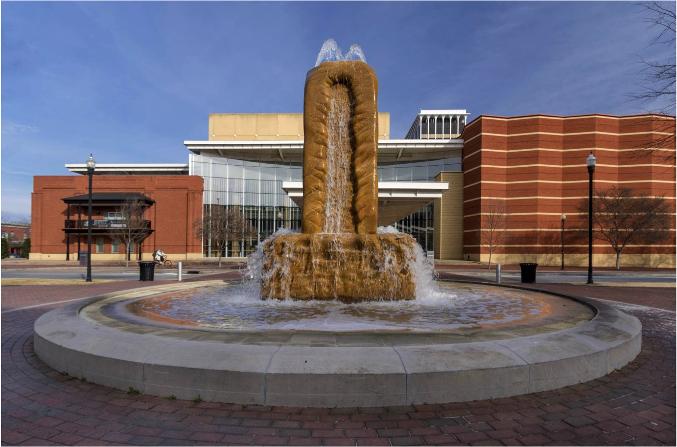 “Drama” is 17 feet tall, with 33 outlets, made from three larger Turkish marble stone, quarried in Anatolia, Turkey. 25 tons of stone were transported to Austria for Muhr to create the sculpture by using a drilling machine, grinders and hand tools. This fountain commemorates the centennial event of the founding of the Columbus Board of Water Commissioners in 1902, and their partnership with Columbus Water Works.